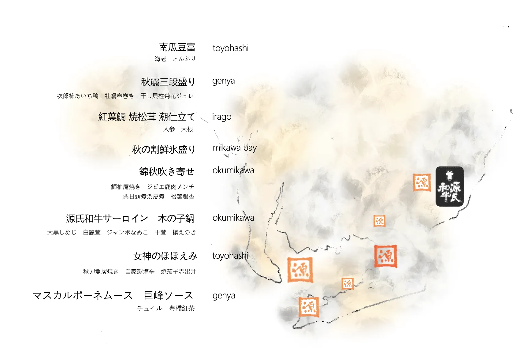 げん屋は「食」「空間」「お酒」「生産者」の4つのこだわりを掲げています。その全てがげん屋のフィロソフィーの根底として先代より脈々と受け継がれております。